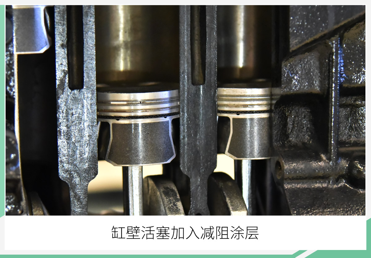 在发动机运行过程中内部摩擦会产生阻力,活塞与缸体的摩擦会降低做功效率,对此大众在发动机活塞与缸体上喷涂一层减阻涂层,可让发动机运行过程更为顺畅,从而提升效率。