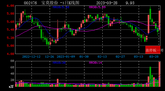 1、宝莫股份(002476)(9.93%)