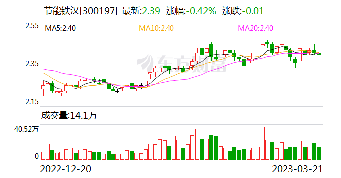 节能铁汉融资融券信息显示,2023年3月21日融资净买入223.06万元;融资余额1.59亿元,较前一日增加1.42%。