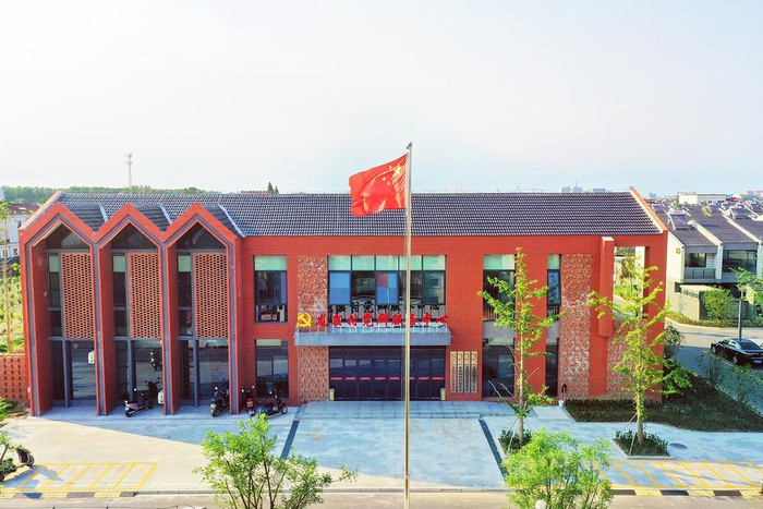 从外观来看,龙窑村党群服务中心最吸引人的便是那红色烧结自保温砖外墙。这一设计并非“脑洞大开”,而是延续了村里西侧蚕厂的外立面风格,实现了地域文化元素的传承。