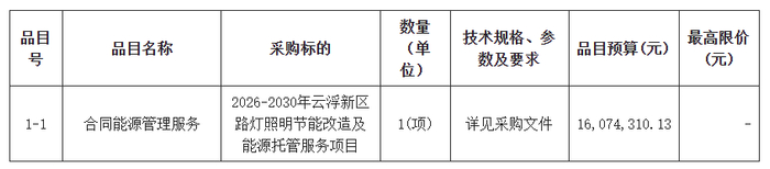 采购包1(2026-2030年云浮新区路灯照明节能改造及能源托管服务项目):