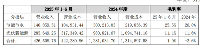 受价格战影响,光伏产品毛利率长期处于低位。2025年上半年,光伏新能源板块的毛利率为-11.1%,其中硅片毛利率-12.75%。2024年,光伏新能源板块毛利率-11.6%,其中光伏产品毛利率为-16.63%,严重拖累了利润。